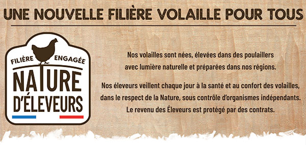 – à l’origine locale des volailles : nées, élevées et préparées en France,